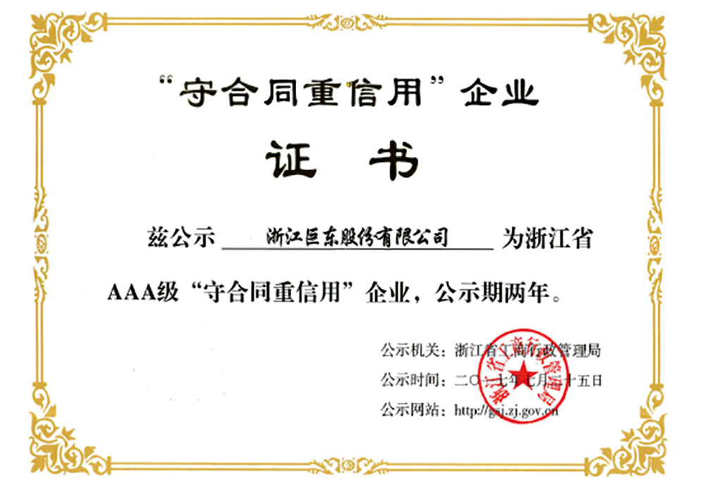 2017年浙江省AAA級守合同重信用企業(yè)