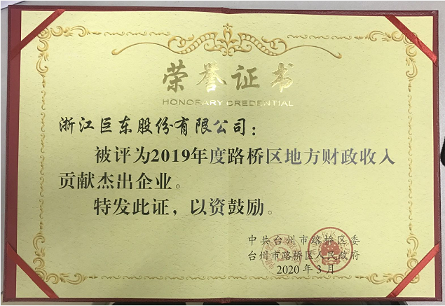 2019年度路橋區(qū)地方財政收入貢獻杰出企業(yè)
