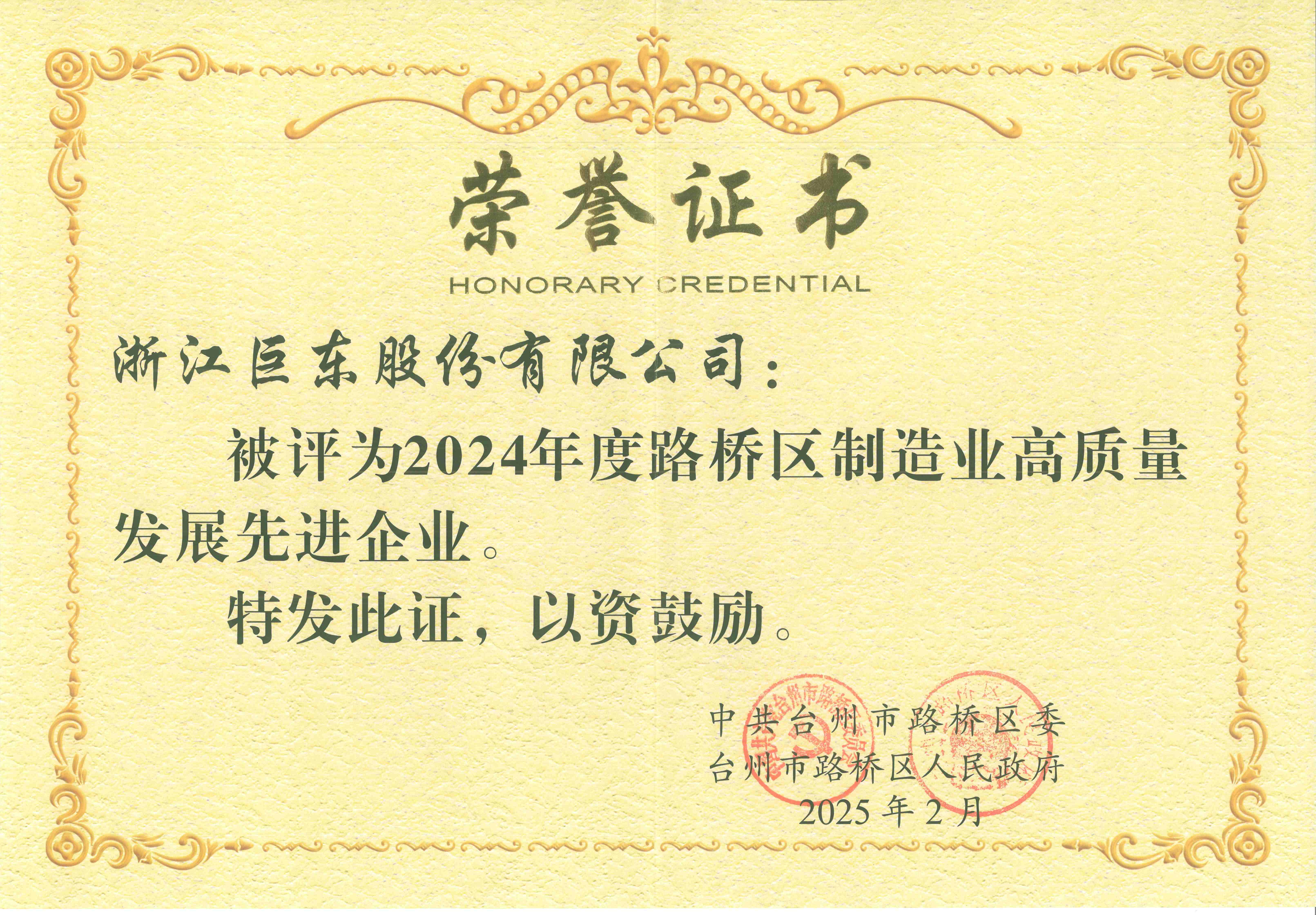 2024年度路橋區(qū)制造業(yè)高質(zhì)量發(fā)展先進企業(yè)