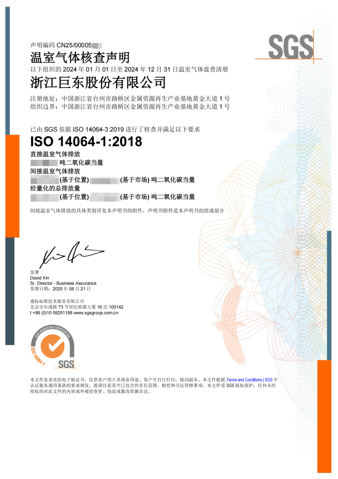 2025年溫室氣體(碳)排放核查聲明