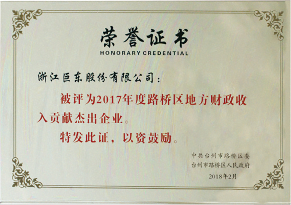 路橋區(qū)地方財政收入貢獻杰出企業(yè)